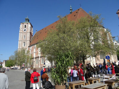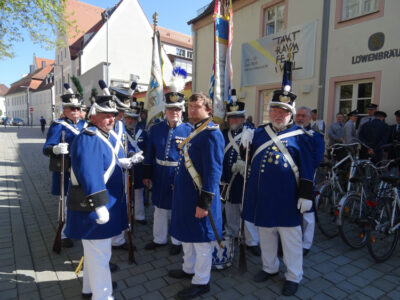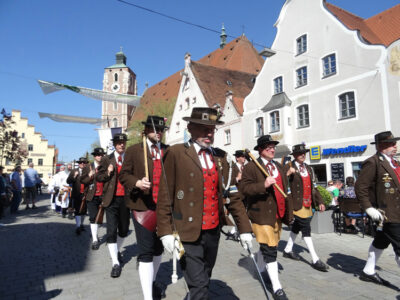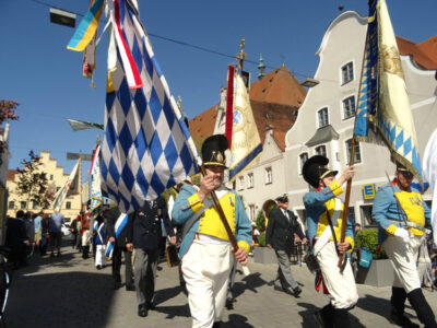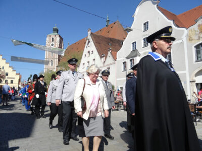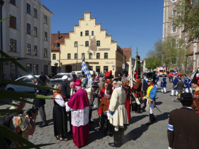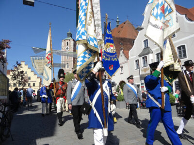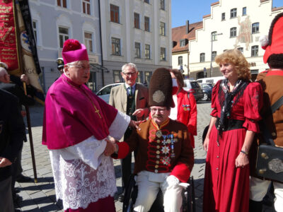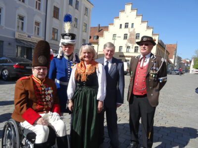 Bei sonnigen Wetter bewegte sich der Festzug vom Liebfrauenmünster zur Moritzkirche. Angeführt wurde dieser farbenprächtige Zug von der Blaskapelle Hitzhofen. Seine Königliche Hoheit Wolfgang Prinz von Bayern, S.E. Bischof Dr. Walter Mixa und die Ehrengäste Dr. Ernst Aichner, Museumsdirektor i.R., MdL a.D. Manfred Dumann, Vorsitzender der Freund des Bay. Armeemuseum und der Präsident der Bayerischen Kameraden- und Soldatenvereinigung Hans Schiener aus Plößberg zogen mit klingendem Spiel zusammen mit den Abordnungen der Mitgliedsvereine aus ganz Bayern, den teilnehmenden Gruppen der Bayerischen Kameradschaft und Soldatenvereinigung und den erstmals teilnehmenden Rittern der Deutschen Ehrenlegion, die Stadtwache Ingolstadt und die Marinekameradschaft Ingolstadt durch die Fußgängerzone in die Moritzkirche. Die sehr würdevolle Festmesse, wurde von der Blaskapelle Hitzhofen feierlich umrahmt. Den Ehrensalut schoss die Historische Bayerische Schützen Compagnie der Stadt Waldmünchen. Mit der Kranzniederlegung durch S.K.H. Wolfgang Prinz von Bayern aus München, den Landeskommandanten der Bayerischen Bürger- und Landwehren in Bayern Oberst d.Ldw. Jürgen Völkl aus Störnstein und den Präsidenten der Bayerischen Kameraden und Soldatenvereinigung Präsident Hans Schiener aus Plößberg gedachten die Teilnehmer den verstorbenen Kameraden und Angehörigen. Die Ehrenwache und die Kranzträger wurden von der Historisch Königlich Bayeri-schen Bürgerwehr Neustadt a.d. Waldnaab gestellt. Zum Schluss der Feierlichkeiten Erklang die Bayernhymne und die Nationalhymne. Nach dem Gottesdienst begaben sich alle Teilnehmer ins Hotel, Gasthof „Zum Anker“ zum gemeinsamen Mittagessen. S.K.H. Wolfgang Prinz von Bayern dankte in seiner Ansprache allen Teilnehmern für die große Teilnahme. Sein besonderer Dank galt dem emeritierten Bischof Dr. Walter Mixa für den würdevollen Festgottesdienst. Landeskommandant Oberst Jürgen Völkl bedankte sich bei den teilegenommenen Gruppen und den Mitorganisationen der Veranstaltung Herrn Museumsdirektor a.D. Dr. Aichner und den MdL a.D. Dr. Manfred Dumann, Vorsitzender der Freunde des Bayerischen Armeemuseums. Sein ganz be-sonderer Dank galt dem emeritierten Bischof Dr. Walter Mixa für die ergreifende Predigt zu Patrona Bavariae sowie für den würdevollen Festgottesdienst.