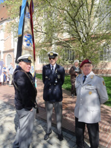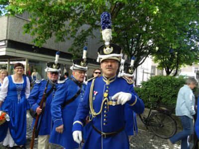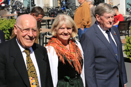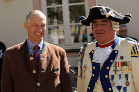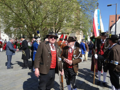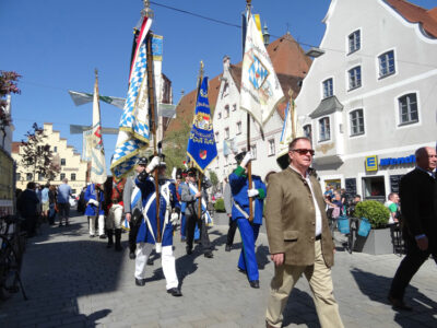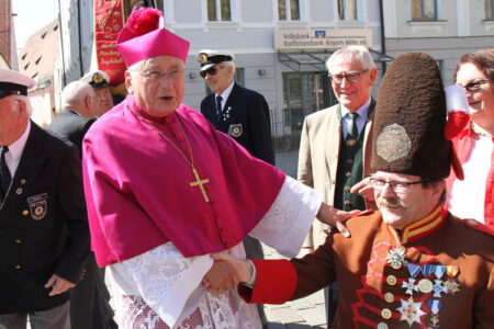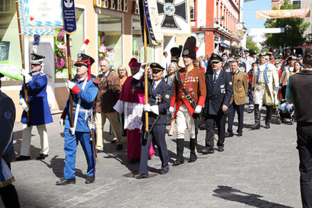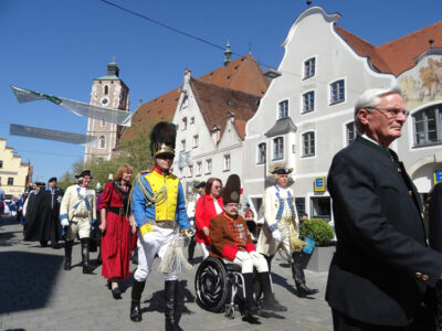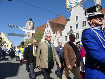 und Soldatenvereinigung (BKV) Hans Schiener und MdL a.D. Dr. Manfred Dumann, Vorsitzender der Freunde des Bayerischen Armeemuseums im Festzug zur Sankt Moritzkirche.