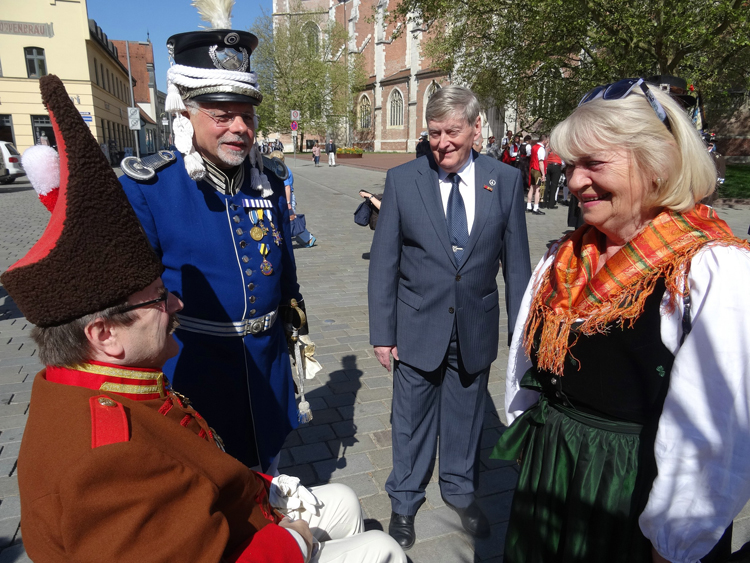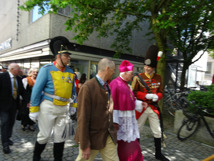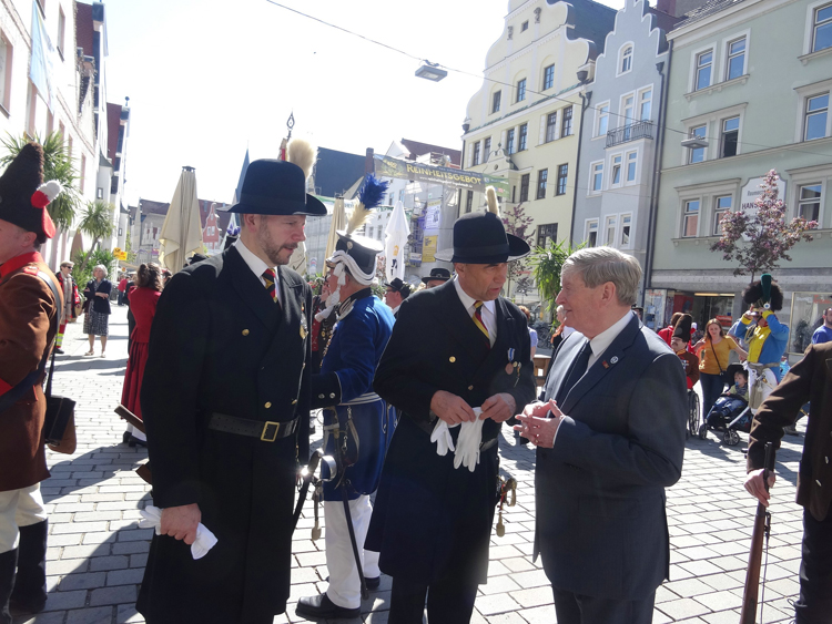 und Soldatenvereinigung (BKV) Hans Schiener und MdL a.D. Dr. Manfred Dumann, Vorsitzender der Freunde des Bayerischen Armeemuseums im Festzug zur Sankt Moritzkirche.
